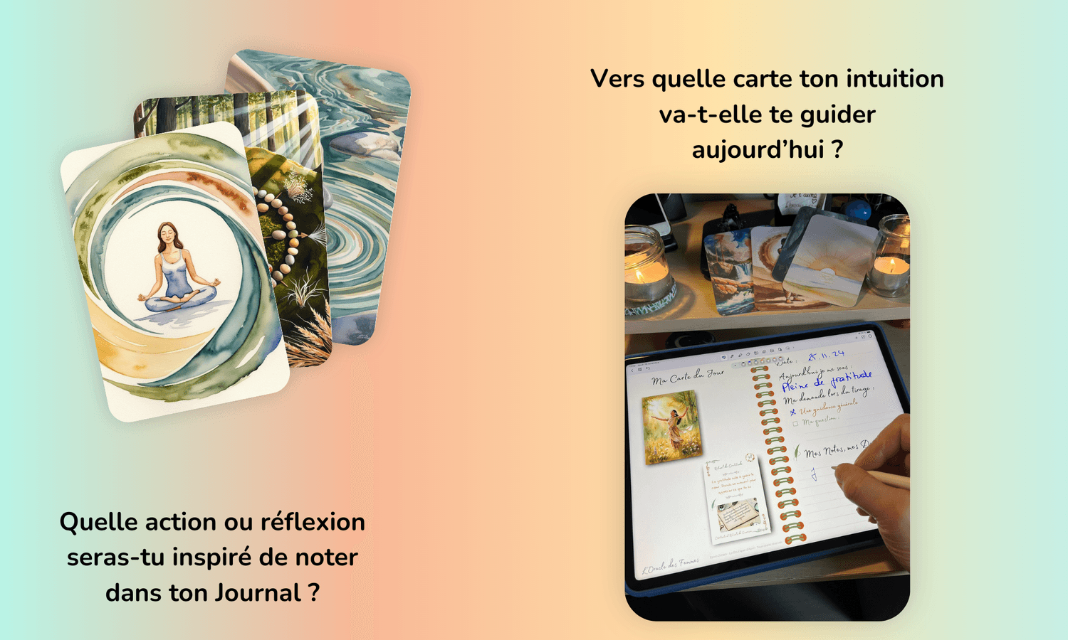 Un pas pour écouter ce qui émerge, noter tes tirages, et te reconnecter à ce qui compte vraiment