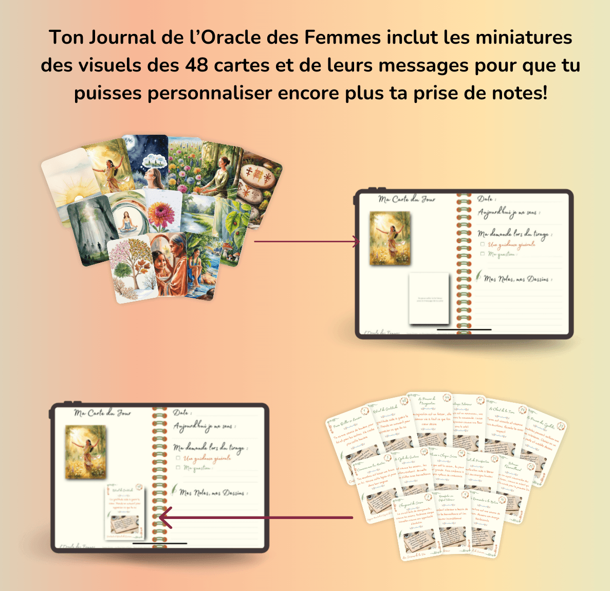 Tu utilises l'Oracle des Femmes et tu veux garder une trace de ce que t’inspire chaque carte,
