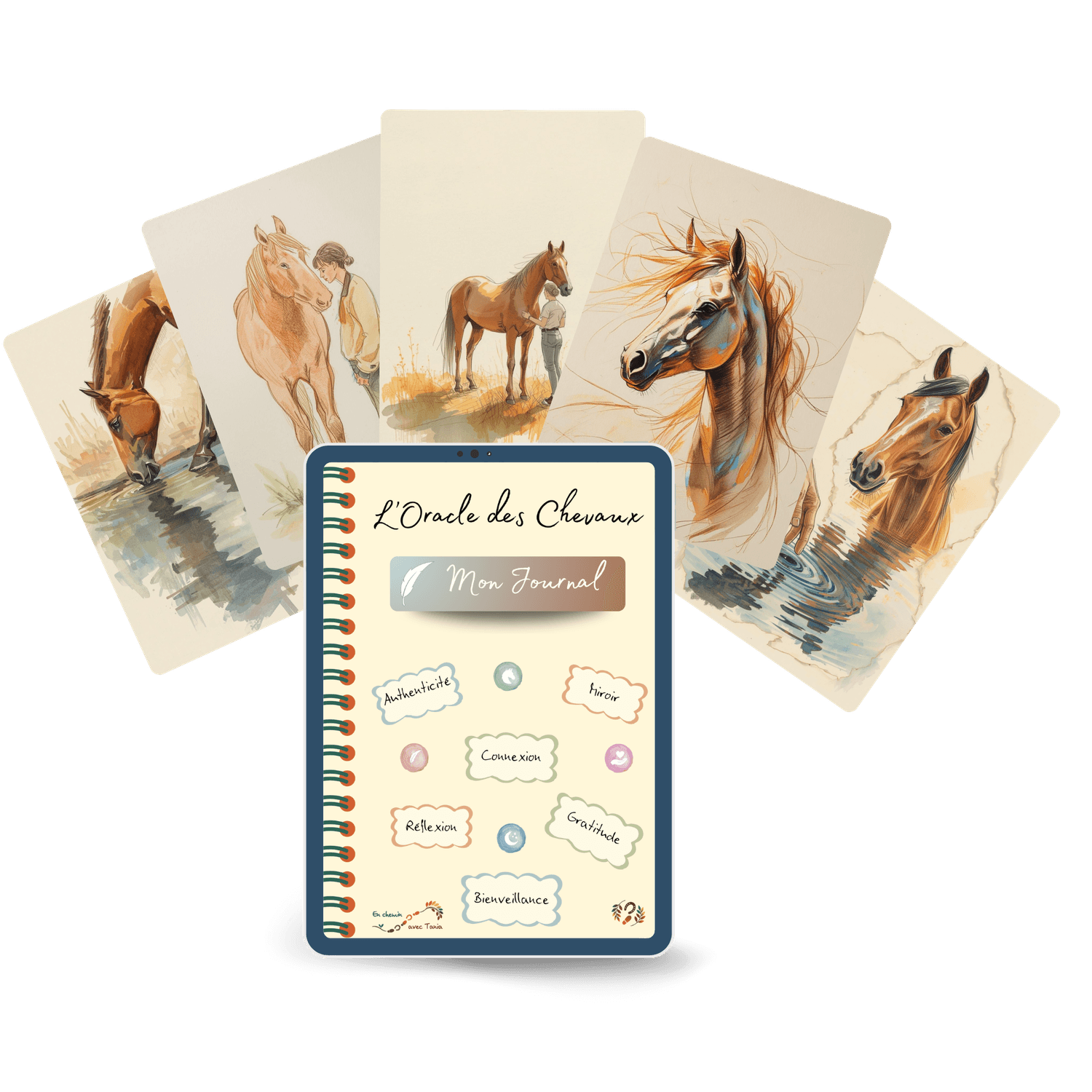 C'est ainsi que Journal de l’Oracle est venu naturellement prolonger cette expérience, tant pour l'Oracle des Femmes que pour l'Oracle des Chevaux : offrir un espace doux et clair pour noter ses tirages, ses ressentis, et ce qui émerge au fil des jours.