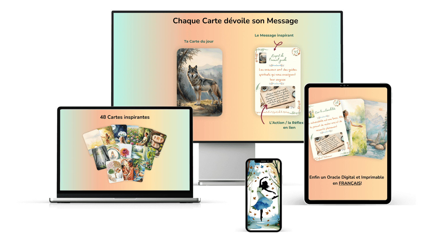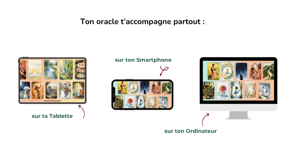 L’Oracle digital : il se présente sous forme d'un PDF interactif , à utiliser directement sur l’appareil de ton choix : ordinateur, tablette ou smartphone. L’oracle te suit partout, où que tu sois