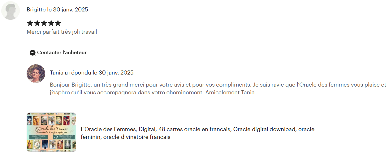 Témoignage de Brigitte après son achat de l'Oracle en version digitale sur Etsy