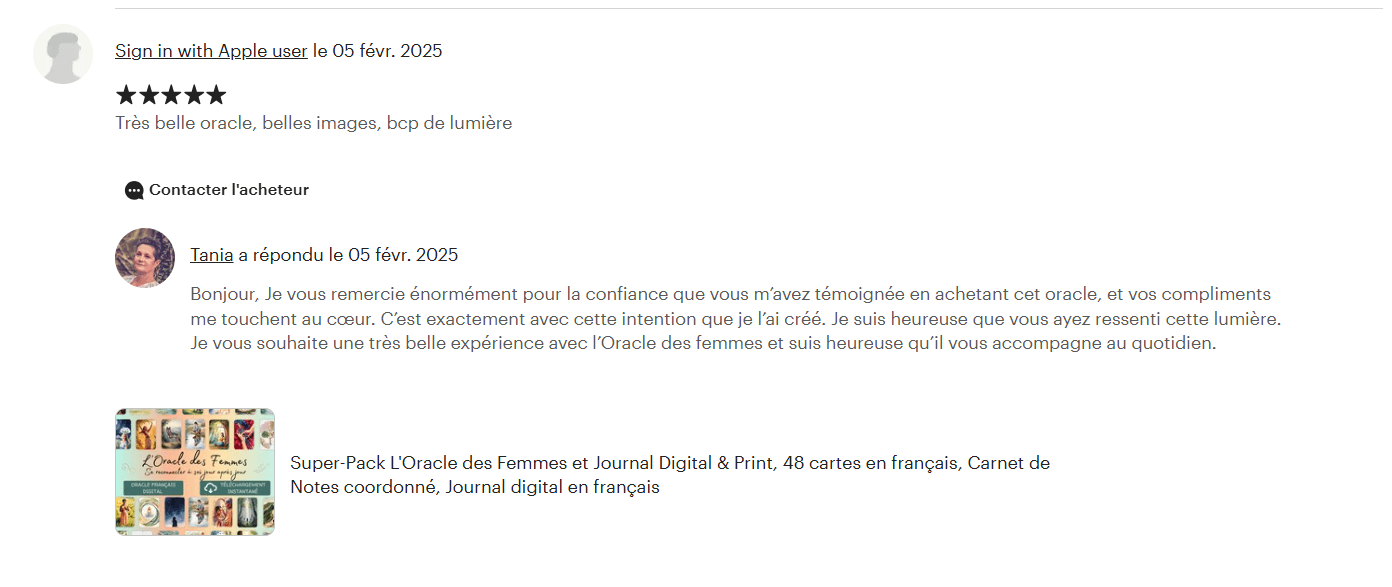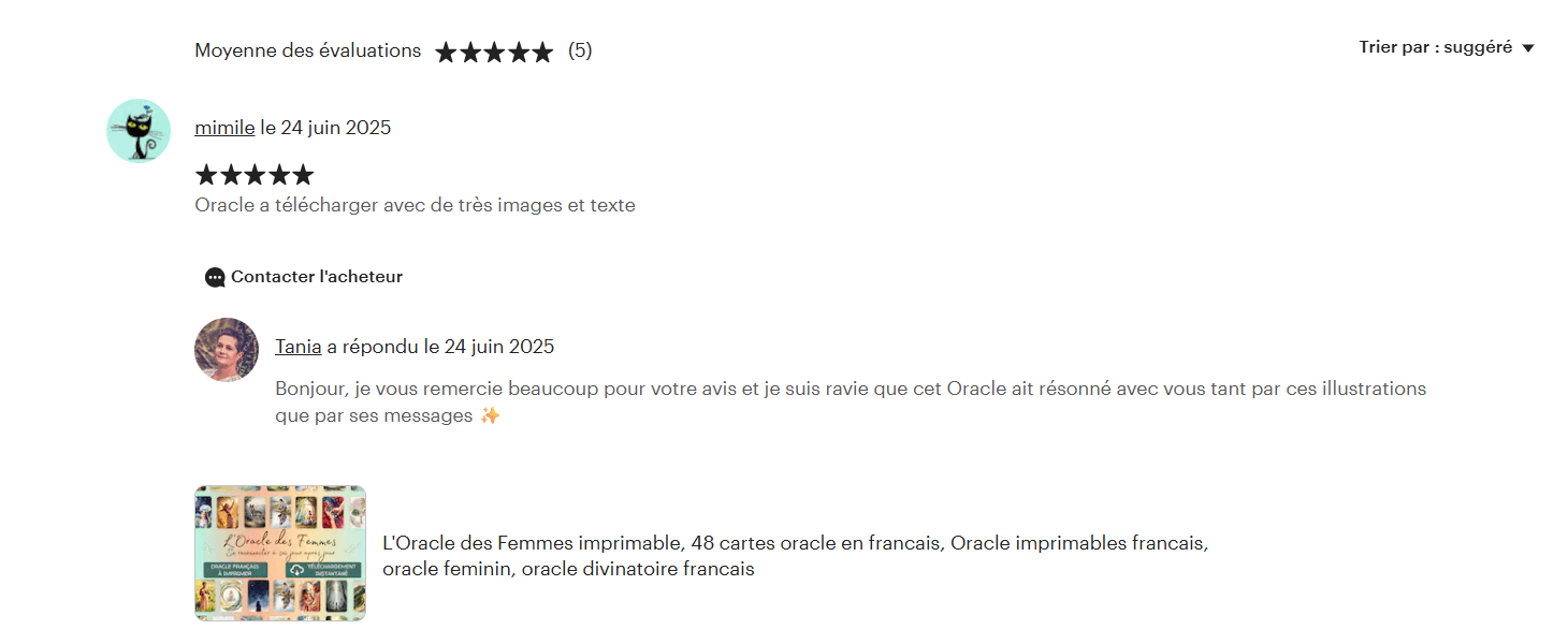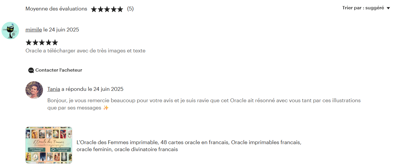Témoignage de Mimile après son achat de l'Oracle à imprimer sur Etsy