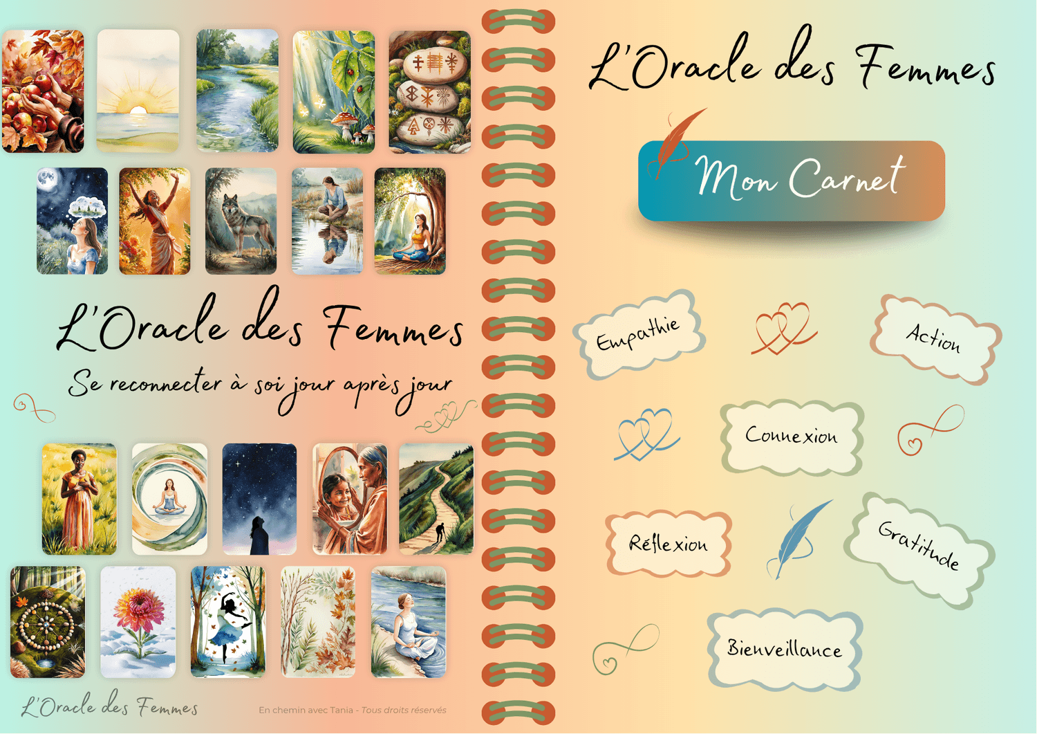 Un carnet de notes à imprimer, parfaitement coordonné à l’Oracle des Femmes, pour t’aider à poser par écrit tes ressentis, clarifier tes intentions et garder une trace de tes tirages au fil des jours.