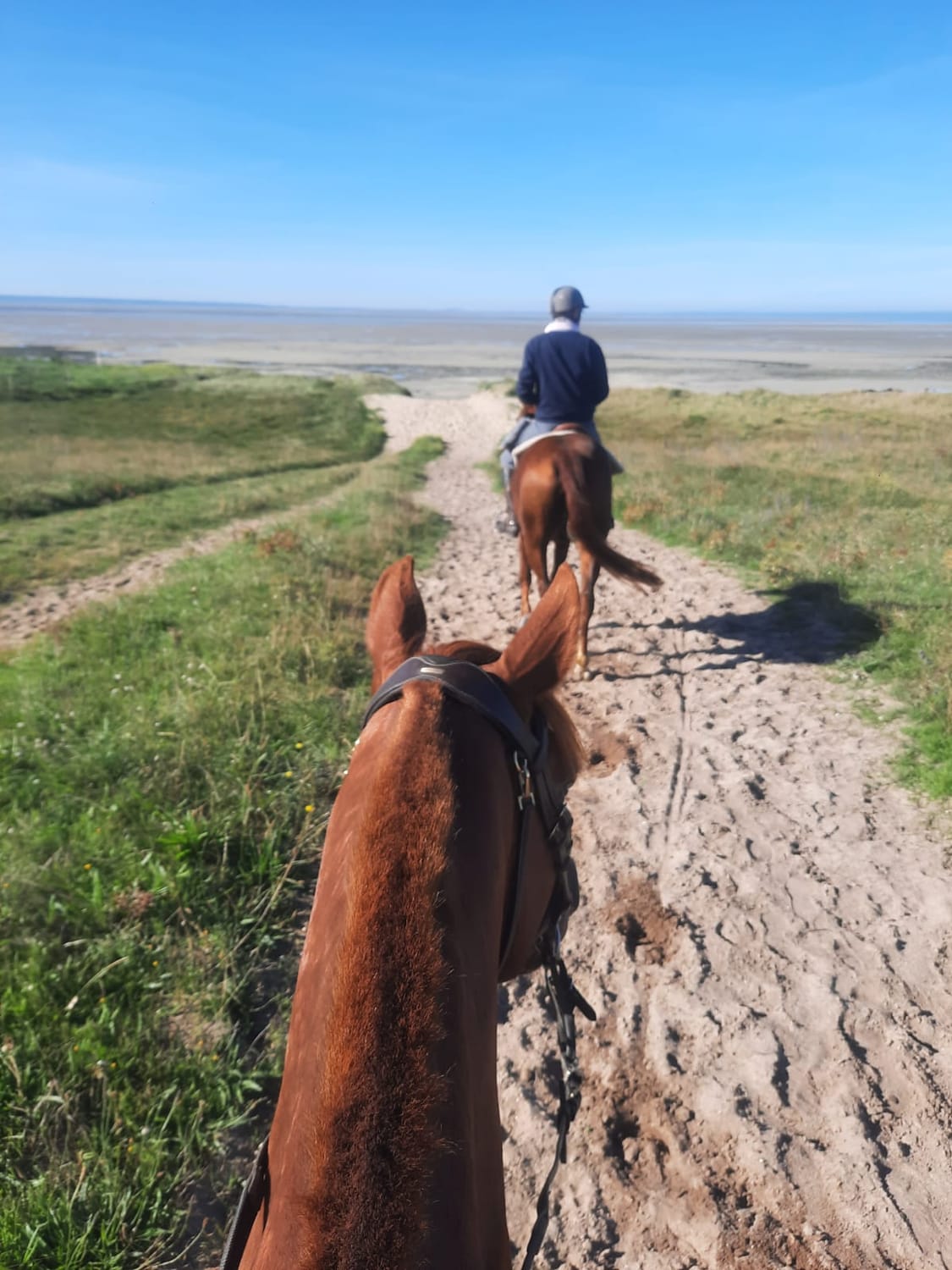 L’objectif n’est donc pas seulement de vivre la traversée de la baie, mais aussi de reprendre confiance dans l’équitation d’extérieur, dans un cadre progressif, attentif et très encadré.