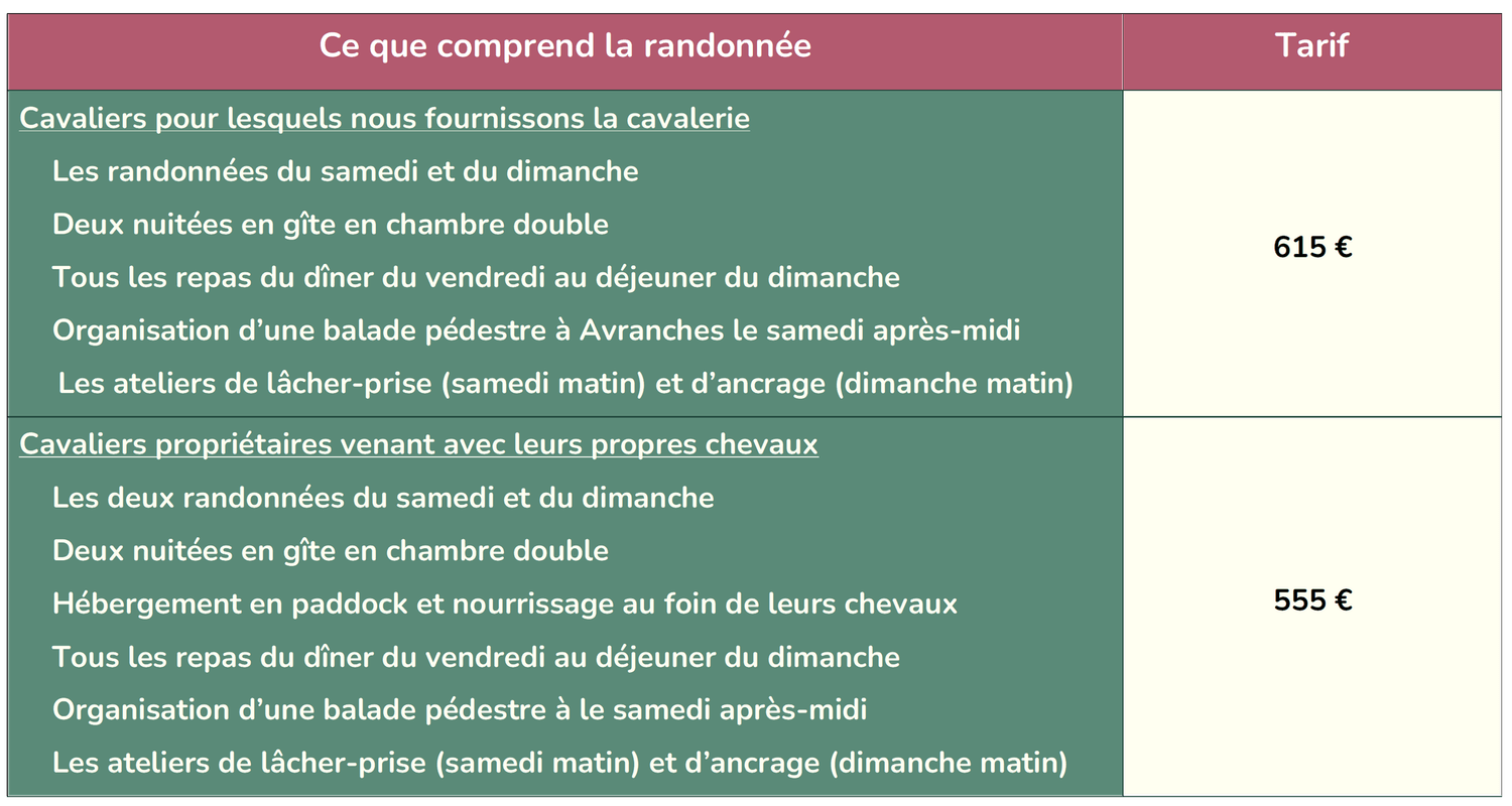 Cette randonnée s’adresse donc avant tout à des cavaliers qui ont envie de vivre l’expérience de la baie du Mont-Saint-Michel à cheval, tout en retrouvant de l’assurance dans les grands espaces.