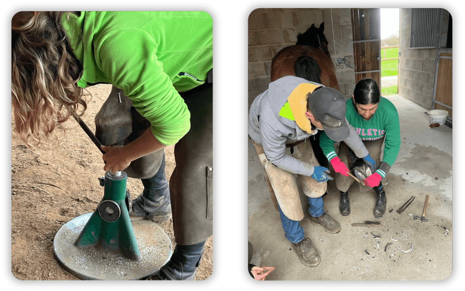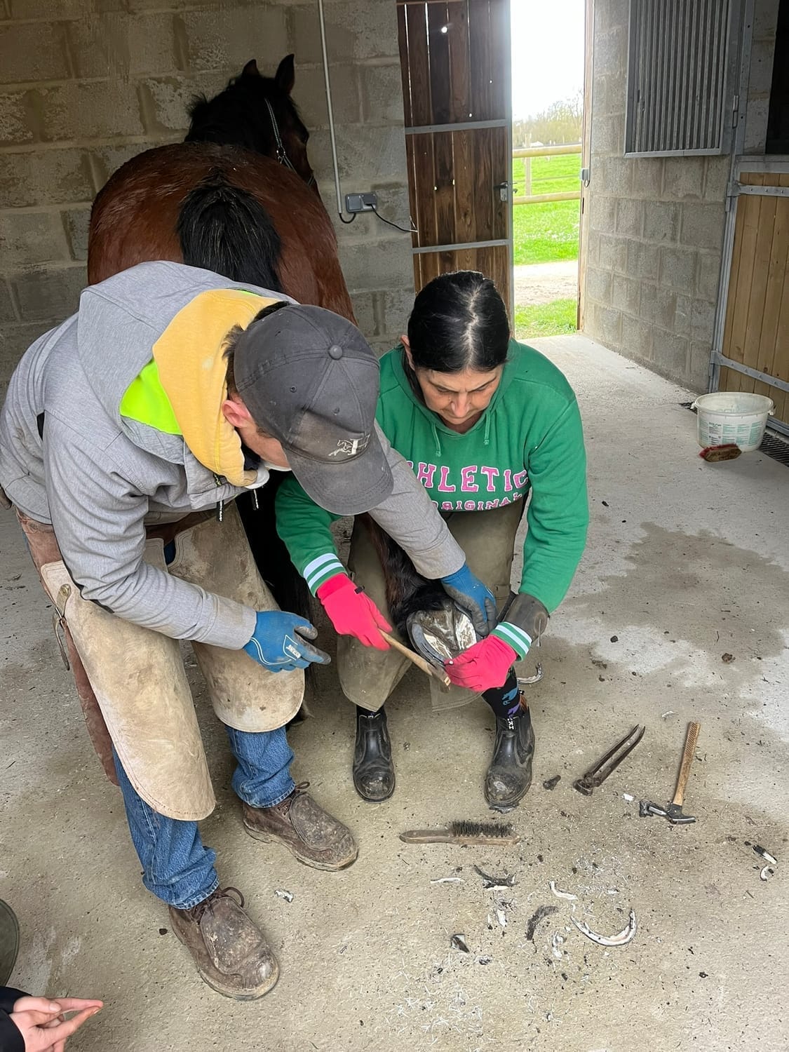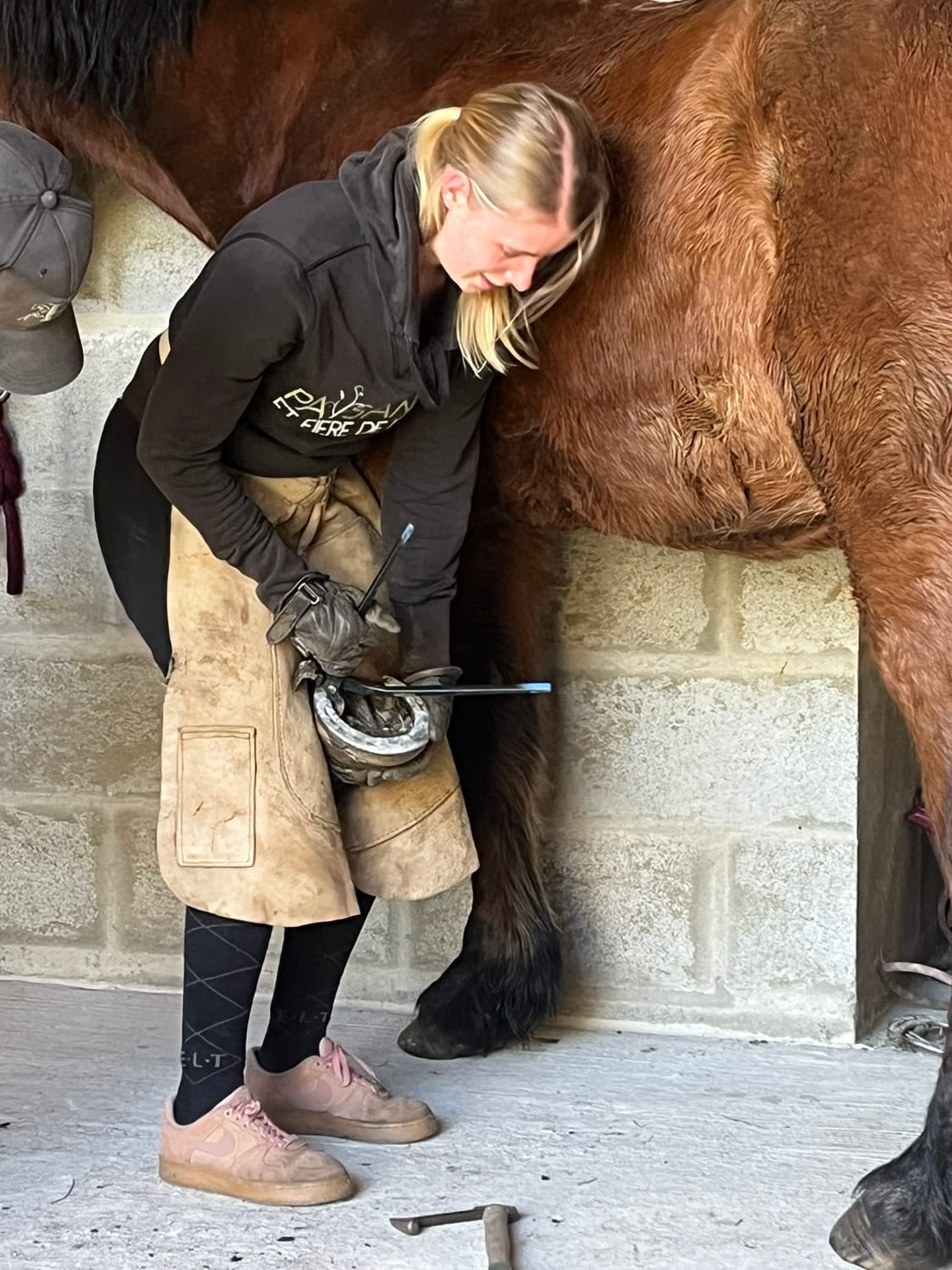 Une journée d'atelier pour aborder les bases de la maréchalerie : manipulation du cheval, présentation des outils de maréchalerie